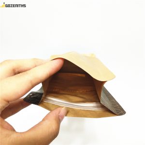 As we can see that this bag has no foil lining, it is more recyclable in some countries because local facilities are unable to process the foil lining or VMPET. Still it is still of good light proof property thanks to the kraft paper material itself and the dark color printing.