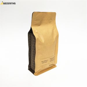 Integrated with the yellow of kraft paper, this flat bottom coffee bags are printed in dark coffee brown on the front, and bottom.