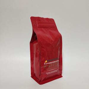 500g or 1 pound glossy red coffee block bottom bags with foil lining and one way degassing valve